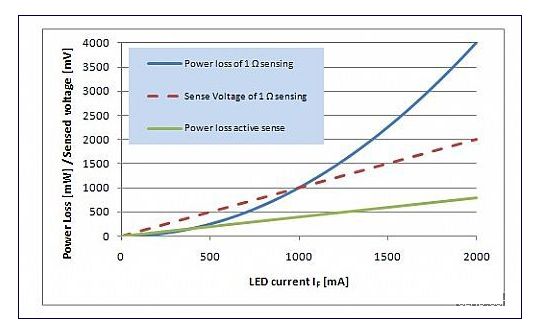 因此,更好的解決方案是一個(gè)集成在 LED 驅(qū)動(dòng)器中的有源電流阱或者電流源,如圖 3 所示。我們可使用一種壓降和由此產(chǎn)生的功耗都得到降低的方法對(duì)內(nèi)部電流檢測(cè)電阻進(jìn)行調(diào)節(jié),具體調(diào)節(jié)情況取決于 LED 電流的大小。如果為低 LED 電流,則壓降可以維持足夠的高以獲得精確的檢測(cè)信號(hào)。