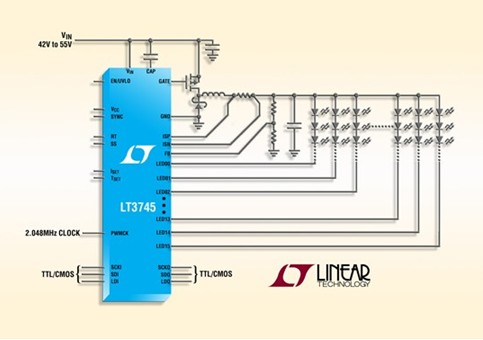 LT3745:凌力爾特公司推出16通道LED驅動器LT3745