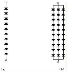 多個LED也可以采用串并聯的結構,通常我們稱之為幾串幾并。例如10串3并就是如圖9b的結構。