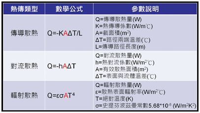 在討論LED熱管理的議題前,首先要先了解基本熱力學。 基本上散熱有3種方式(表2),分別為“傳導式散熱”、“對流式散熱”以及“輻射式散熱”,從以上三者的理論公式可以分析出,散熱最主要問題點就在“面積”;另外,由于因輻射在接近室溫情況下散熱量非常小,所以最主要討論的散熱方式在傳導和對流兩方面。