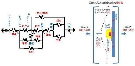 在了解散熱之前還要知道熱歐姆定理,傳統(tǒng)的電流歐姆定理:V=IR,壓降=電流×電阻,電阻愈大,壓降就愈大,表示電壓在元件中消耗量愈大;同樣的,熱歐姆定理:ΔT=QR,溫差=熱流×熱阻,當熱阻愈大時,就有愈多的熱殘留在元件內(nèi),這說明了散熱效果要越好,熱阻就要越低。 熱歐姆定理是以熱阻(Thermal resistance)將熱傳以物理量量化,計算方式為LED介面溫度與室溫的溫差除以單位輸入功率。 簡單來說,如熱阻為10℃/W,表示每輸入1W的能量會是LED上升10℃。