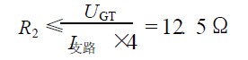 該電路由VT1、R2、R3 組成,VT1采用Motoro2la公司的MCR729210 (UDRM = 800 V,控制極觸發(fā)電壓UGT = 0. 8 V,觸發(fā)電流IGT = 10 mA) .R2 為單向晶閘管提供觸發(fā)偏置電壓,其阻值的選擇至關(guān)重要,如果值太大,則電路中某些不穩(wěn)定因素導(dǎo)致LED中的電流瞬間變大,會(huì)導(dǎo)致晶閘管頻繁觸發(fā),保護(hù)電路頻繁起作用,造成電路工作不正常;如果阻值選的過小, LED可能在超出其規(guī)格穩(wěn)定值下工作,保護(hù)電路不靈敏,會(huì)造成LED壽命縮短。因要求LED支路電流為16 mA,則: