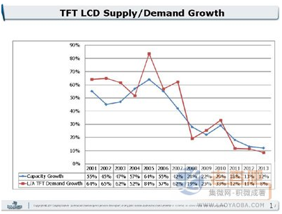 首先是面板的供需關系已經質變。過去10年是產能與需求均快速成長的時期(圖1)。在產業處于快速發展期時,當供給成長速度快于需求,便會產生供過于求,反之亦然。然自2011年開始,供給與需求皆不會再如過去般劇烈變化,產業已由青年時期步入成年期。相對地,許多策略如產能利用、技術開發、市場開拓、財務運作與客戶關系等已演化出成熟期的作法,此將體現在2012年面板廠商及其供應鏈的眾多策略調整。
