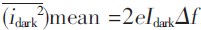 ②暗電流噪聲。光電探測器在沒有光照時,由于負偏壓的作用會產生毫微安級的"暗光流".其噪聲均方值為:
