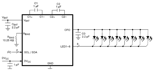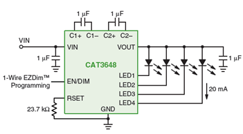 圖10:CAT3224 LED驅(qū)動(dòng)器應(yīng)用電路圖