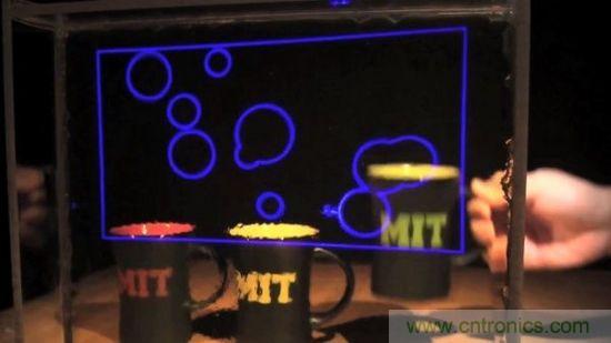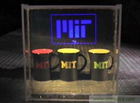 MIT的研究小組,已經利用市售的納米銀粒子打造出了一套概念驗證系統。最終效果如下圖所示(散射的藍光部分)。當然,如果利用納米粒子分別調諧紅/綠/藍3色光的話,就能夠實現全彩顯示。
