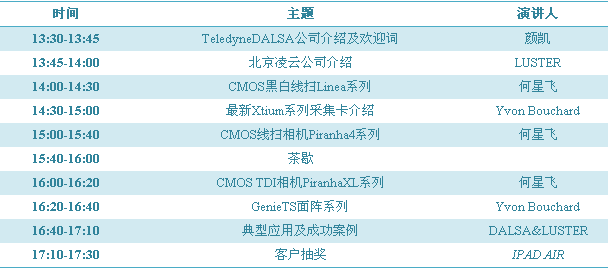 秉承客戶至上,以市場需求為導向,感謝一路上有新老客戶的陪伴支持與理解,才使得凌云公司在前進的道路上有足夠的動力與方向,看到了美好的視覺給人們帶來的豐富多彩的生活。此次答謝會得到了Teledyne DALSA的高度重視與支持,屆時,DALSA亞太區OEM技術總監Yvon Bouchard、 DALSA線掃描產品資深產品經理何星飛等大咖將會帶來國際前沿的技術與產品資訊: