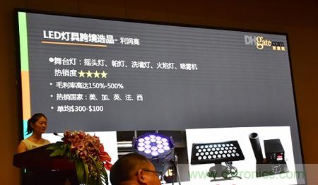 【導(dǎo)讀】周慧榮現(xiàn)場表示,敦煌網(wǎng)的數(shù)據(jù)顯示,2013-2014年海外買家對中國LED燈具采購快速增長,2015年上半年LED燈具海外采購總體增長開始放緩,但是LED燈具中的燈管、球泡、筒燈等受到海外買家歡迎,室內(nèi)照明燈具、舞臺燈、植物生長燈等利潤高,隨著采購?fù)镜絹?,下半年增幅有望沖高。