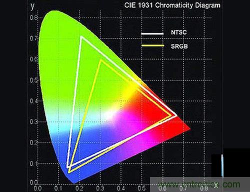 (sRGB與NTSC色域的對比)