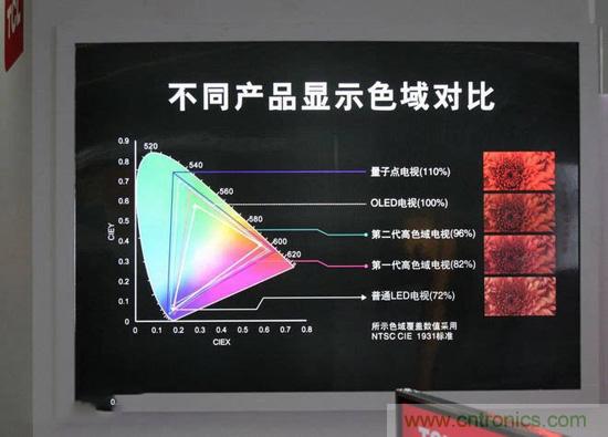 傳說中價格爆炸的OLED電視,色域據說能超過NTSC的范圍,OLED屏幕比普通LCD屏幕的優勢之一也就在這里;而量子點電視的色域則據說可以超過現在的OLED電視(前不久發布的TCL量子點電視H9700官方稱其色域為110%NTSC)。