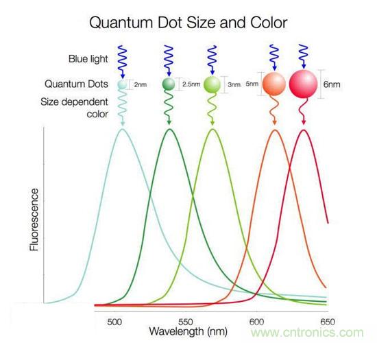 而傳說中的量子點顯示技術就是對背光方案做出變革:所謂的量子點,可以簡單認為是長寬高都在100nm以下的材料(幾個原子的大小),這種極小的半導體晶體在激發后可以發光,至于究竟是怎么發光的,那是科學研究范疇,這里不做討論。比較靠譜的一個結論是,量子點的大小,與其所發出光的能量強度(波長)成正比。也就是說,量子點的直徑越小,激發后的光波長越短,也就是顏色偏藍,直徑越大則激發后的光波長越長,也就是顏色偏紅。