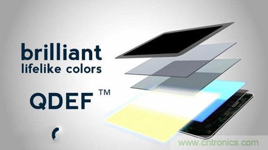 還有一種方案是直接做出含有紅色與綠色量子點的整張薄膜,通過下方的藍色LED激發并穿過之,聯合發出白色背光,這是3M和Nanosys目前主導的一種方案,被稱作QDEF技術(The Quantum Dot Enhancement Film),似乎是業界普遍看好的方案,三星、LG、TCL等都傾向于這樣的方案。