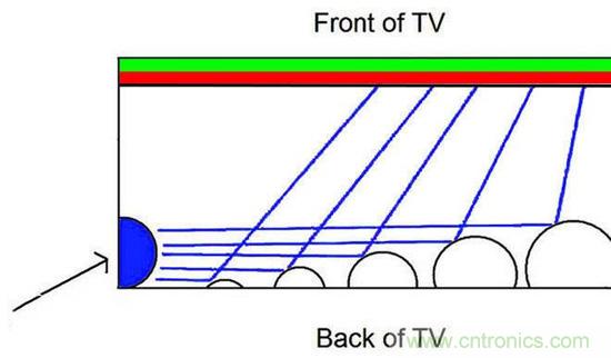 要了解量子點屏幕究竟和OLED屏幕比起來如何,我們還是得先知道量子點技術的本質。傳統的LCD液晶屏幕有背光,這個背光位于相對靠下方的位置,用于照亮整個屏幕。背光有很多種方案,其中一種是背光就用RGB-LED,即藍色、綠色和紅色三種LED。