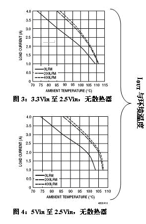 DC/DC 穩壓器具有高效率并不意味著它能夠散出浪費的功率,尤其是在其尺寸縮小后,更是這樣。為了讓一個更緊湊的 DC/DC 設計提供同樣的功率,POL 系統必須具有較低的熱阻。否則,POL 解決方案的額定輸出功率甚至在相對正常的環境溫度和電壓轉換條件下也必須降低。例如,如果 LTM4604 的封裝有熱阻不良問題,那么它在 70oC 至 90oC 的環境溫度范圍時,必須降級為 1.5A 器件,甚至有空氣流動時也一樣。為了保證甚至在極端的環境溫度和 DC/DC 轉換條件下,都能以最少的功率降額提供最高的輸出,LTM4604 的封裝設計允許從頂部和底部散熱。參見圖 3、圖 4 和表 2,其中列舉了就 2.5V 輸出電壓設計所測得的熱阻。