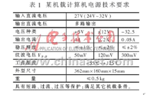 某機載計算機對電源部件的技術要求見表1。