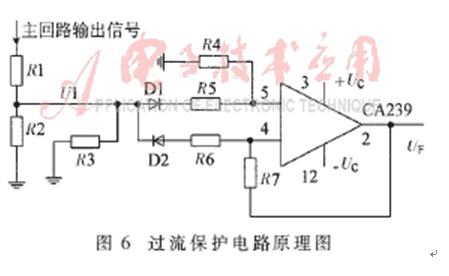 適當選擇各電阻值,過電流時,就可以可靠地關斷控制電路[6]。