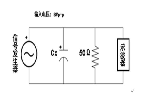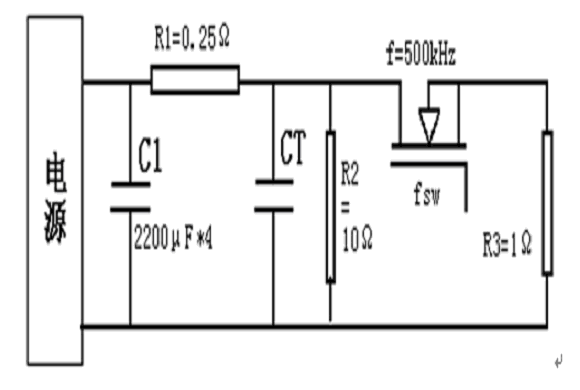 由于電子產(chǎn)品的工作電壓不斷地降低,而其功耗卻在增大, 這就要求DC/DC轉(zhuǎn)換器具有輸出電壓低和輸出電流高等特點。作為DC/DC轉(zhuǎn)換器或開關(guān)電源輸出電容,要求在開關(guān)管的工作頻率附近具有較低的紋波電壓。為了觀察PA-Cap在開關(guān)管一般工作頻率下的紋波電壓效果,進行了如圖3所示的測試,其中的參數(shù)示于表1中。