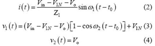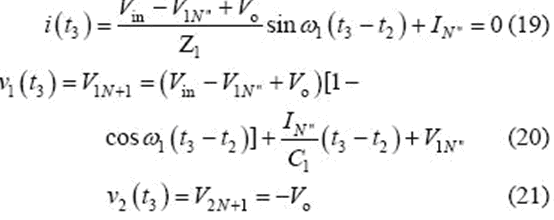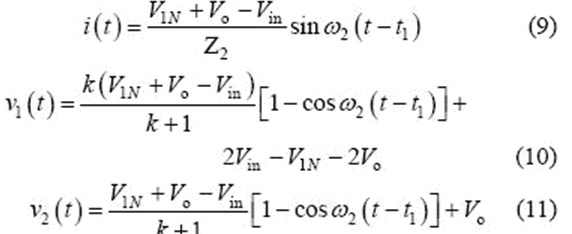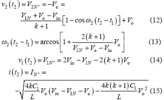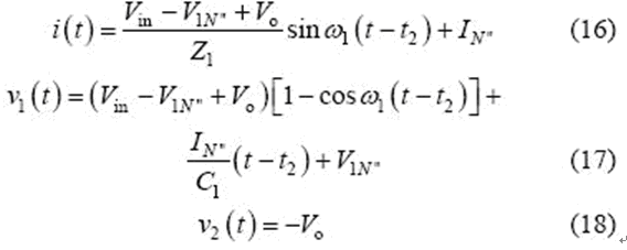 當(dāng)v2(t2)= -Vo 時,該模式結(jié)束,可得到如下表達(dá)式