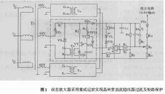 盡管功率場效應VDMOS 和絕緣柵雙極型晶體管IGBT等電力半導體元器件層出不窮,且在電力電子技術領域占據重要位置,晶閘管(可控硅) 卻因耐高壓耐大電流沖擊的特性,仍有著穩(wěn)固的陣地,受到用戶的青睞。在擯棄電流采樣、放大和執(zhí)行等多個環(huán)節(jié)的情況下,將單結晶體管移相觸發(fā)器中的晶體管誤差放大器改為集成運算放大器,就可實現晶閘管直流穩(wěn)壓器的過流及短路保護,簡化了電路結構,并提高了整機的穩(wěn)定可靠性能和AC - DC變換效率。