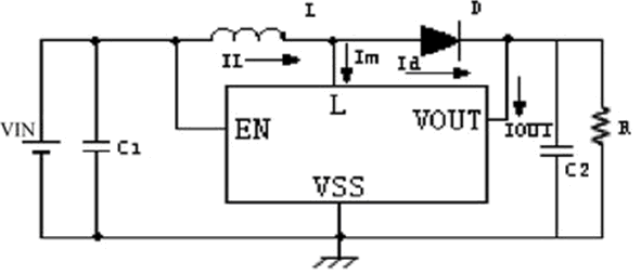 在正常工作情況下,當輸入電壓在0.9V~2.4V之間變化時,輸出電壓可以保持在1.8V~6.5V之間的任意值,實現了升壓DC/DC轉換。