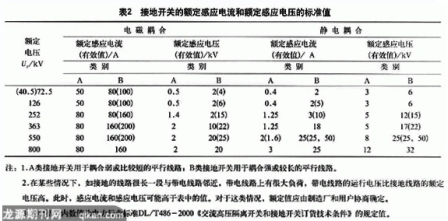 國標GB1985中以規(guī)范性附錄C給出了接地開關(guān)開合感應(yīng)電流的要求和試驗方法。接地開關(guān)的額定感應(yīng)電流和額定感應(yīng)電壓的標準值,應(yīng)從表2中選取,試驗次數(shù)為10次開合操作循環(huán)。