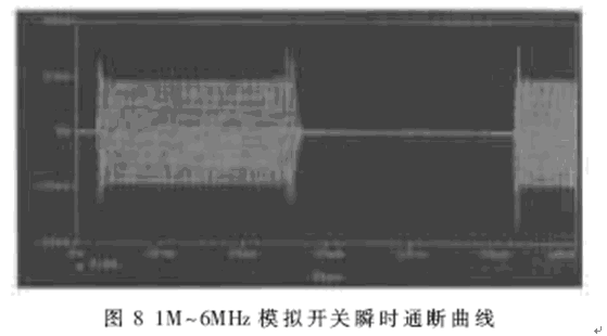 表1、2給出了開關(guān)的實測指標(biāo)。圖8給出了開關(guān)瞬時通斷仿真曲線。