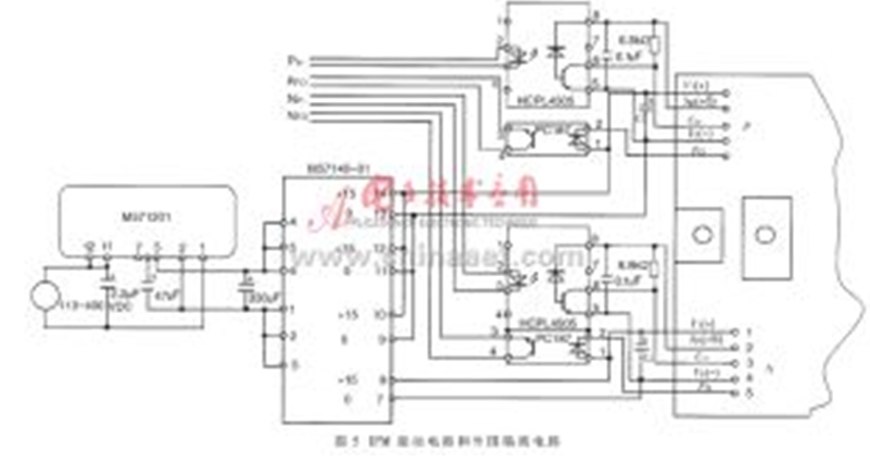 筆者在DSP控制開關(guān)磁阻電機(jī)的項(xiàng)目中,選用IPM作為功率變換器的主開關(guān)器件,控制器采用了德州公司的TMS320F240 數(shù)字信號處理器,功率驅(qū)動(dòng)電路的輸入(即IPM的控制信號)由TMS320F240內(nèi)含的全比較單元相對應(yīng)的PWM1~PWM4產(chǎn)生。