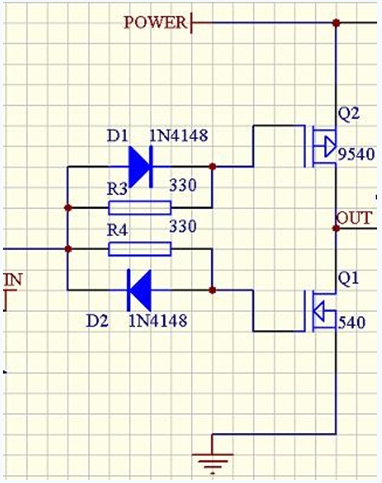 這個電路要求在IN端輸入的是邊緣陡峭的方波脈沖,因此控制信號從單片機或者其他開路輸出的設備接入后,要經過施密特觸發(fā)器(比如555)或者推挽輸出的高速比較器才能接到IN端。如果輸入邊緣過緩,二極管延時電路也就失去了作用。