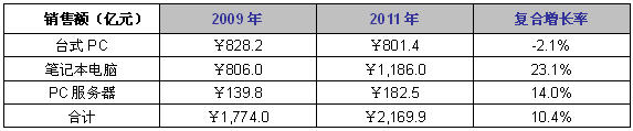 表1 2009-2011年中國PCs市場銷售額預(yù)測