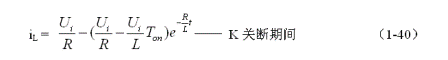 (1-44)式中iL為流過儲能電感L電流的瞬時值,t為時間變量;i(0)為的初始電流,即:控制開關K接通瞬間之前,流過儲能電感L中的電流。當開關電源工作于臨界連續電流狀態時,i(0) = 0 ,由此可以求得流過儲能電感L的最大電流為: