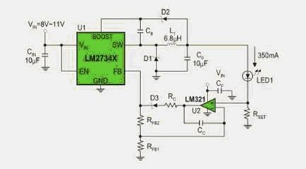 圖3:基于LM2734的恒流驅動電路。
