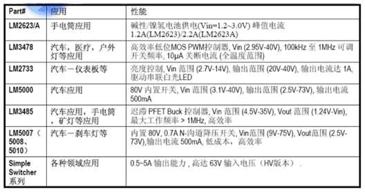 表2:美國國家半導體的LED驅動器解決方案一覽表