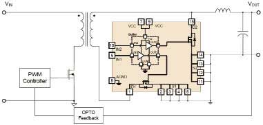 用來調(diào)整次級電壓的二極管通常由MOSFET代替,該模塊包含了柵極驅(qū)動器和功率MOSFET,采用外引腳極寬的小型單列直插封裝,可減小寄生電感和電阻。