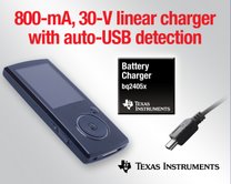 德州儀器 (TI) 目前宣布面向單節(jié)鋰離子電池供電的電子產(chǎn)品推出兩款具有自動(dòng) USB 檢測功能的 800 mA USB 電池充電器系列產(chǎn)品。該 bq2404x 與 bq2405x 電池充電器集成電路支持高達(dá) 30 V 的高輸入電壓范圍,并提供 6.6 V 過壓保護(hù)功能,可支持從入門級功能手機(jī)到智能手機(jī)的各種手持設(shè)備以及其它可能使用低成本適配器的低功耗手持設(shè)備。