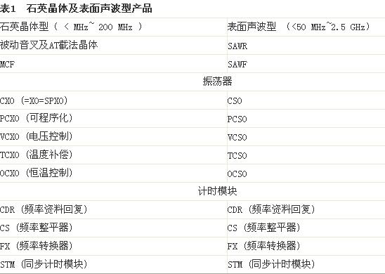 因為有線及無線市場的快速成長,石英晶體及其高頻所需的表面聲波(SAW)裝置已受到廣泛運用,范圍從電子玩具所使用的簡單被動石英晶體,到最精密電信網絡骨干頻率所使用的復雜同步計時模塊(STM)(表1)。如前篇文章所述,從2000~2001年的「.COM」市場瓦解之后,對于石英晶體及石英振蕩器的需求,以每年4~10%之間穩定增加。而頻率控制產品的產業大環境,也經歷巨大的變化。