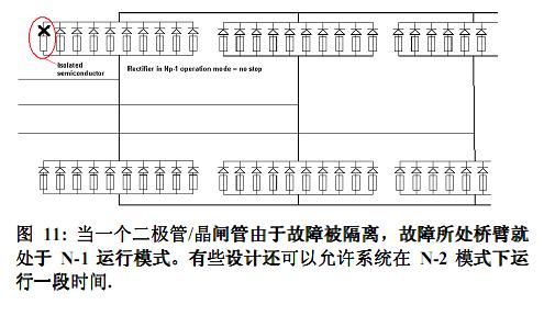 整流器中的半導體和快熔的配合需要仔細考慮。一個考慮周全的熔斷器保護方案基本不存在半導體爆炸的可能。與之相反,不當的系統設計將會導致燃弧和起火、損壞整個整流器單元、以及操作人員的人身傷害。按照N-1模式設計系統可以保護用戶免受生產線部分或全部停頓帶來的損失。因此,在大功率整流應用中,都是基于N-1模式的連續滿載運行。在某些應用中,客戶甚至要求按N-2-或更多來進行設計,這些都要加以考慮。如果整流器在N-x模式下運行了過長的時間,而整流器本不是按照N-x模式來設計的,那么結果就是故障熔斷器所在橋臂的所有其他熔斷器也受到了傷害。