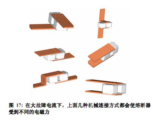 現代生產過程對整流器電流輸出能力要求越來越高,這意味著整流柜中的能量密度越來越大。將現代新型的大功率半導體與5號快熔搭配,可以減少整流器中元件的數目,每個元件承擔的電流也將會增加,故障電流水平也將增長,甚至可能達到接近300KA的水平。在這么大的故障電流下,由于電流通路的不同走向,熔斷器有可能要承受巨大的電磁力。
