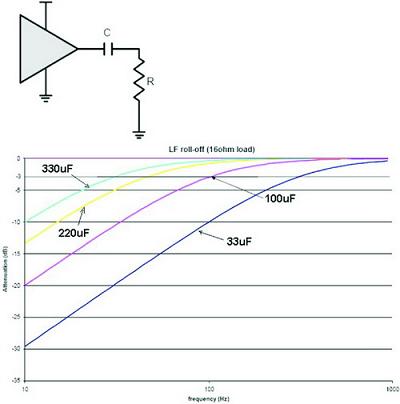 圖1采用不同容值的隔直電容時形成的高通濾波器頻響