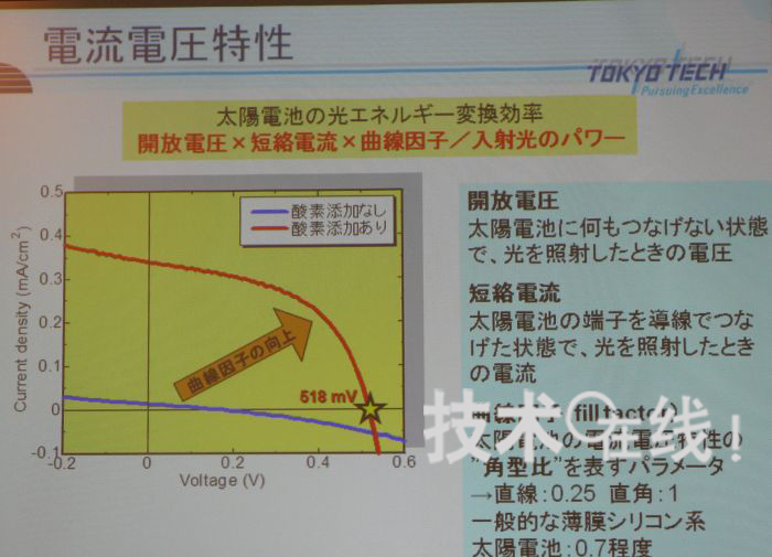 此次,小長井研究小組的產(chǎn)官學(xué)合作研究員黑川康良宣布,通過向位于硅量子點(diǎn)周圍的非晶SiC層添加氧,以防止SiC的結(jié)晶化等,元件的Voc和FF值分別達(dá)到了518mV和0.51。據(jù)稱,此前的硅量子點(diǎn)太陽能電池,澳大利亞新南威爾士大學(xué)(New South Wales University)教授M. Green小組發(fā)布的Voc=492mV為最高值。“我們的目標(biāo)是達(dá)到700~1000mV”(黑川)。