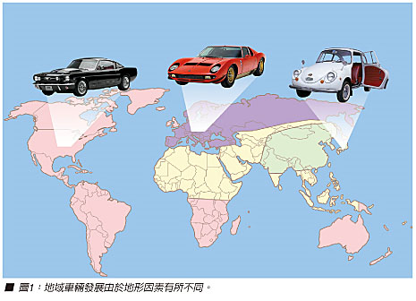供需失衡的原因很多,最重要的關(guān)鍵,仍是兩個主要的問題:其一為能源危機,另一則是環(huán)境保護。自有汽車產(chǎn)業(yè)后,全球汽車的發(fā)展方向可簡單分為歐、日、美 三大趨勢,歐洲為汽車的發(fā)源地,在各種交雜的環(huán)境下,汽車的發(fā)展可小可大,既有高級房車、亦有小巧的轎車,由于工藝的原因,歐洲車在安全與能耗方面取得較優(yōu)異的平衡。(圖1)