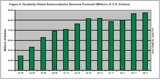所有主要半導體類別——微型元件、邏輯、模擬、分立與光學及傳感器,預計2010年的增幅都將高于25%。