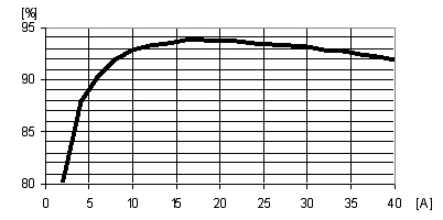 40A的數(shù)字設(shè)計(jì)專為大電流作了優(yōu)化,這反映在圖5中15-30A范圍內(nèi)的效率性能曲線上。當(dāng)輸出電流低于10A時(shí),它包括了18A模擬設(shè)計(jì)的可用工作范圍的絕大部分,其效率要比模擬POL穩(wěn)壓器略微低一些,這是由于較高的開關(guān)損耗所致。但在半負(fù)載點(diǎn)上(20A),其效率達(dá)到93.7%,比相同輸出電流的模擬設(shè)計(jì)提高了2.4%。即便是在40A的滿負(fù)載點(diǎn)上,效率仍達(dá)91.9%,也比相應(yīng)的模擬POL穩(wěn)壓器高0.6%。故在所有關(guān)注的設(shè)計(jì)范圍內(nèi),40A數(shù)字設(shè)計(jì)的效率也優(yōu)于模擬設(shè)計(jì)。改善的原因歸結(jié)于所采用的元器件數(shù)量與20A設(shè)計(jì)一樣多。而當(dāng)輸入電壓為9.6V時(shí),40A設(shè)計(jì)的效率也能夠再提高1%。