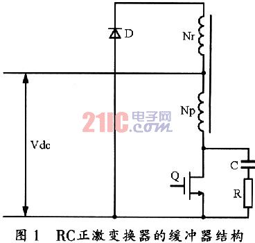 圖4所示是一個帶有RC緩沖電路的正激變換器主電路。該主電路參數(shù)為:Np=Nr=43匝。Ns=32匝,開關(guān)頻率f=70kHz,輸入電壓范圍為直流48~96V,輸出為直流12V和直流0.5A。