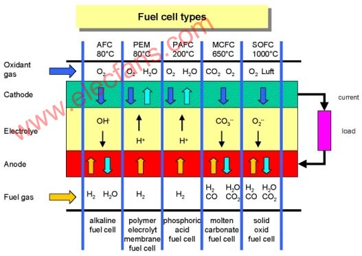 圖1:各種燃料電池的工作過程[page]