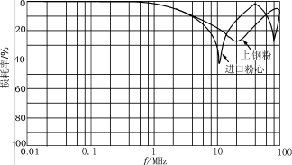 圖6兩種鐵粉心的插入損耗曲線