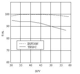 該電源模塊的電源效率與輸入電壓的關系曲線如圖6所示。