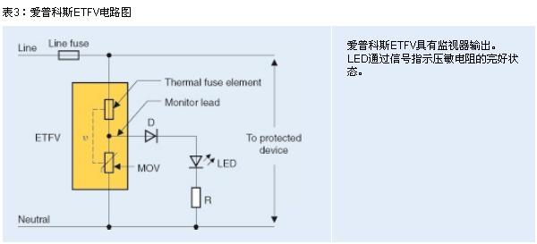 為使太陽(yáng)能逆變器制造商以低成本滿足各大標(biāo)準(zhǔn)及保險(xiǎn)公司的嚴(yán)格要求,TDK-EPC現(xiàn)開(kāi)發(fā)出 ETFV系列(愛(ài)普科斯熱熔式壓敏電阻)。這些組件通過(guò)串聯(lián)電路組合在一起,包括一個(gè)壓敏電阻和一個(gè)熱熔絲。如果壓敏電阻已嚴(yán)重退化,并致使較高漏電流導(dǎo)致過(guò)熱,熔絲將熔斷以斷開(kāi)壓敏電阻。上述元件的一大特色便是監(jiān)視引線:通過(guò)延伸壓敏電阻與熱熔絲之間的觸點(diǎn)以驅(qū)動(dòng)LED(參見(jiàn)圖3)。