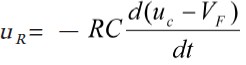 u0為穩壓二極管VD的穩定電壓,發光二極管的導通壓降為VF ,t ≥0時電容儲存的能量通過發光二極管和電阻釋放出來,在這段時間內發光二極管發光,根據KVL可得: