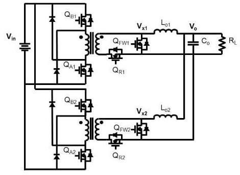 圖1:雙相交錯(cuò)式雙開(kāi)關(guān)正向轉(zhuǎn)換器