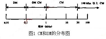 EMI信號包括共模干擾信號CM和差模干擾信號DM,CM和DM分布如圖1所示。它可用來指導如何確定EMI濾波器網絡結構和參數。